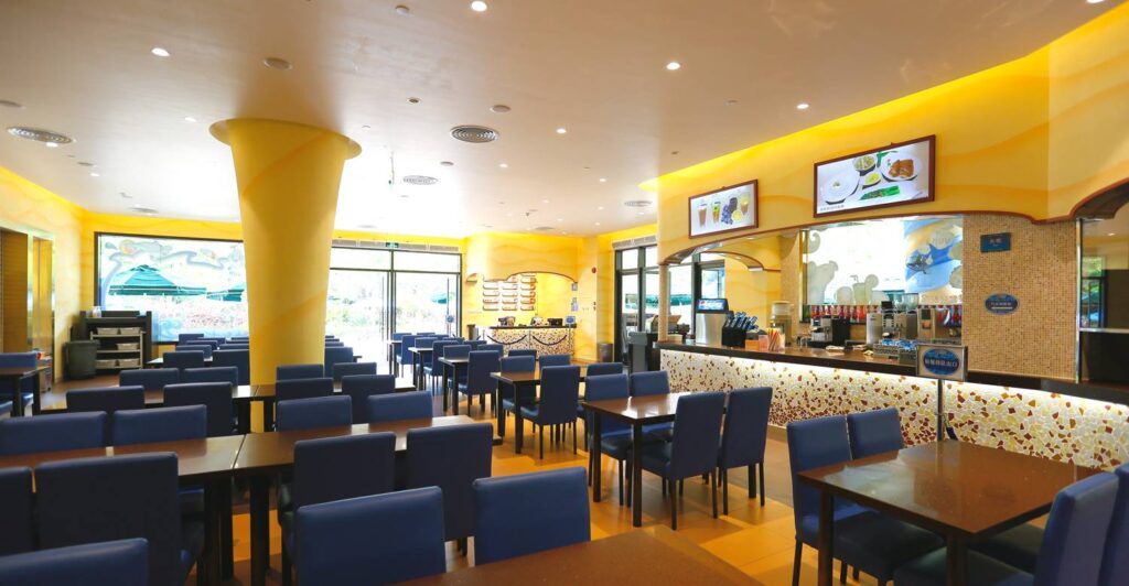 Beyond the food, the Castle Restaurant offers character dining interactions where beloved Chimelong Ocean Kingdom mascots—including the playful Ocean King and Princess Pearl—visit tables to share stories, pose for photos, and delight children with themed activities. Evenings feature live piano performances and subtle lighting that transforms the space into a moonlit castle courtyard, enhancing the storybook ambiance.